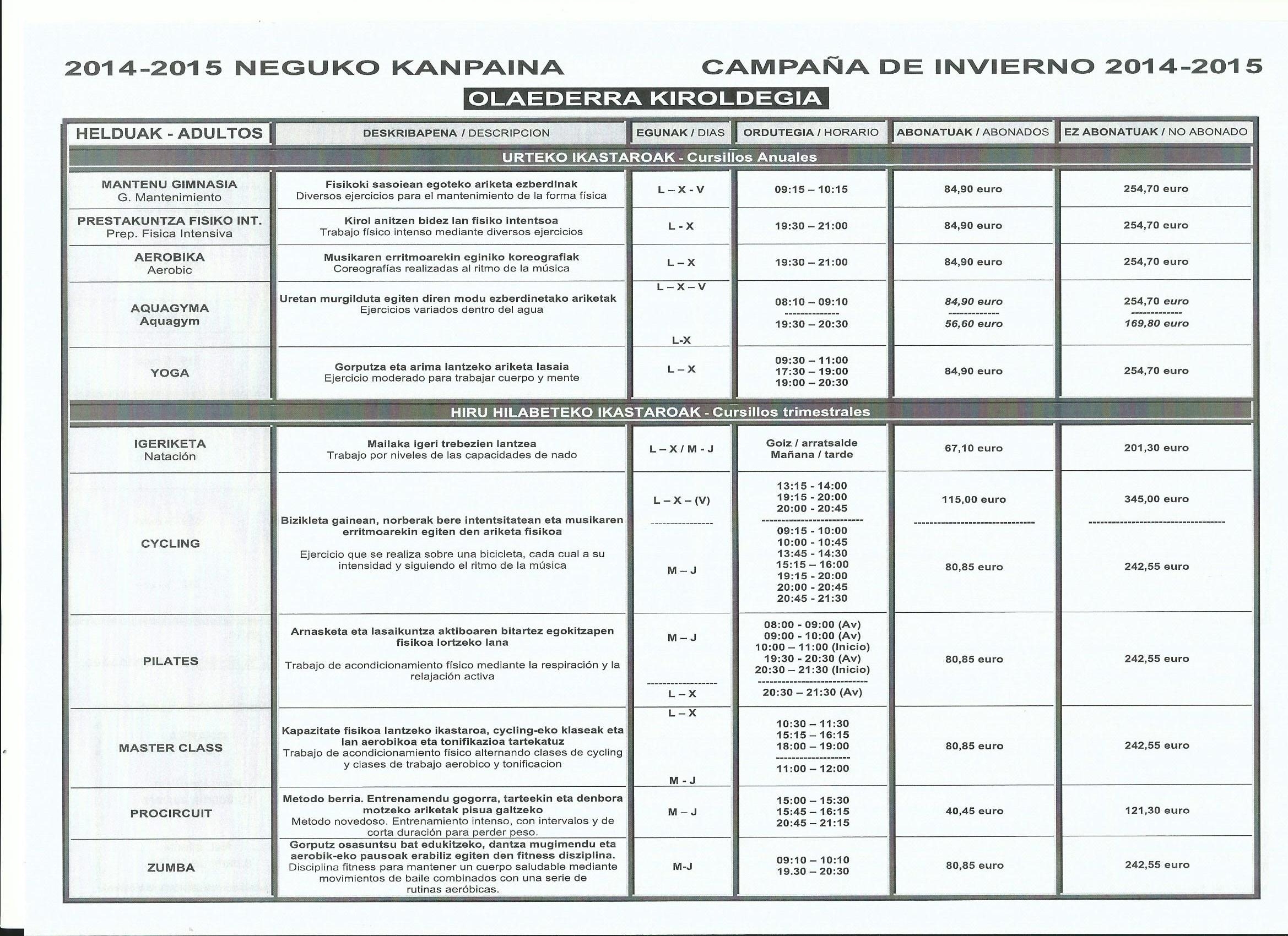 Abonatuek irailaren 10etik aurrera eta ez abonatuek irailaren 15etik aurrera izango dute Olaederra kiroldegian eskaintzen diren ikastaroetan izena emateko aukera.