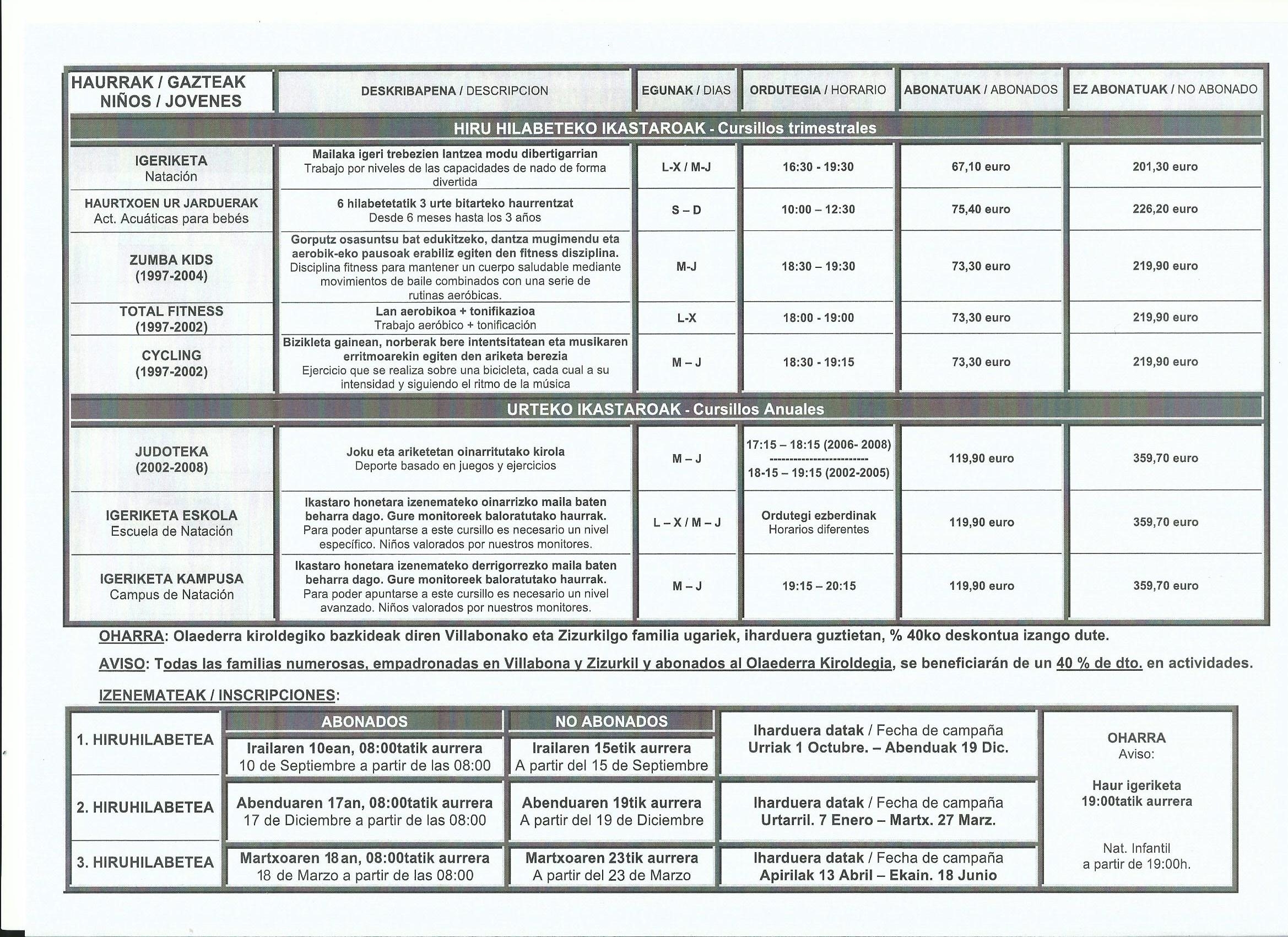 Gainera, Olaederra kiroldegiko bazkide diren Villabonako eta Zizurkil familia ugariek % 40ko deskontua izango dute jarduera guztietan.